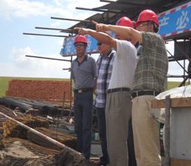 華能鄂溫克旗伊敏蘇木風電場一期(49.5MW)工程,風機基礎(chǔ)澆筑完成9基,進場道路基開槽17.03km,升壓站基礎(chǔ)澆筑完成,一層梁板柱混凝土澆筑完成,35kV配電室基礎(chǔ)完成,主變基礎(chǔ)澆筑完成。7月12日華能集團趙總親臨施工現(xiàn)場檢查工作,對工程施工進度、質(zhì)量表示滿意。
